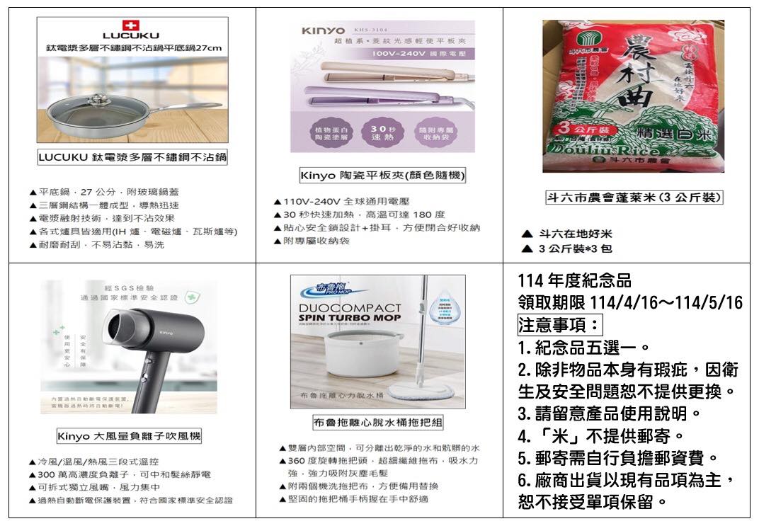 ⚠️注意!!!!如會員需要郵寄(郵資需自行負擔)請4/16-5/16電洽工會領取序號,未電洽郵寄請自行來工會領取;超過時間因無法以大量商品結帳恕不受理