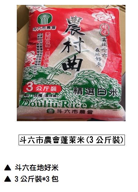 💋好禮五:斗六市農會農村曲米(3公斤裝*3包)