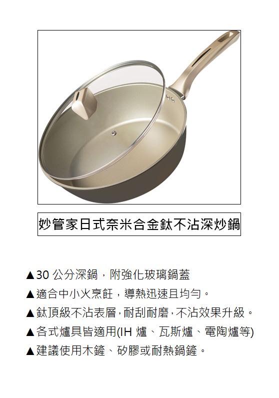 好禮一:妙管家 30cm 合金鈦不沾深炒鍋 (附玻璃鍋蓋)