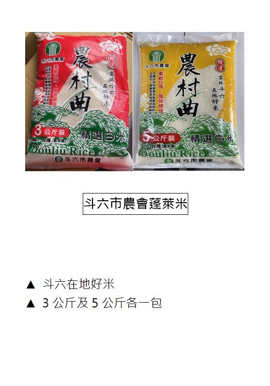 好禮四:斗六市農會農村曲米 (5公斤裝*1包+3公斤白米*1包)